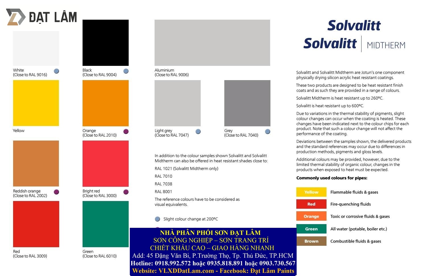 SƠN CHỊU NHIỆT JOTUN SOLVALITT 1 THÀNH PHẦN Sơn chịu nhiệt Jotun Solvalitt là loại sơn 1 thành phần khô lý gốc silicone acrylic, là loại sơn chịu nhiệt lên tới 600°C. Có thể dùng làm lớp chống rỉ, lớp trung gian hay lớp phủ hoàn thiện trong môi trường...