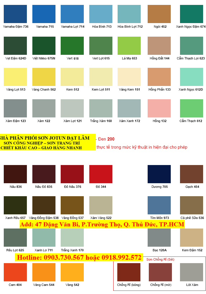 BẢNG MÀU SƠN CÔNG NGHIỆP JOTUN