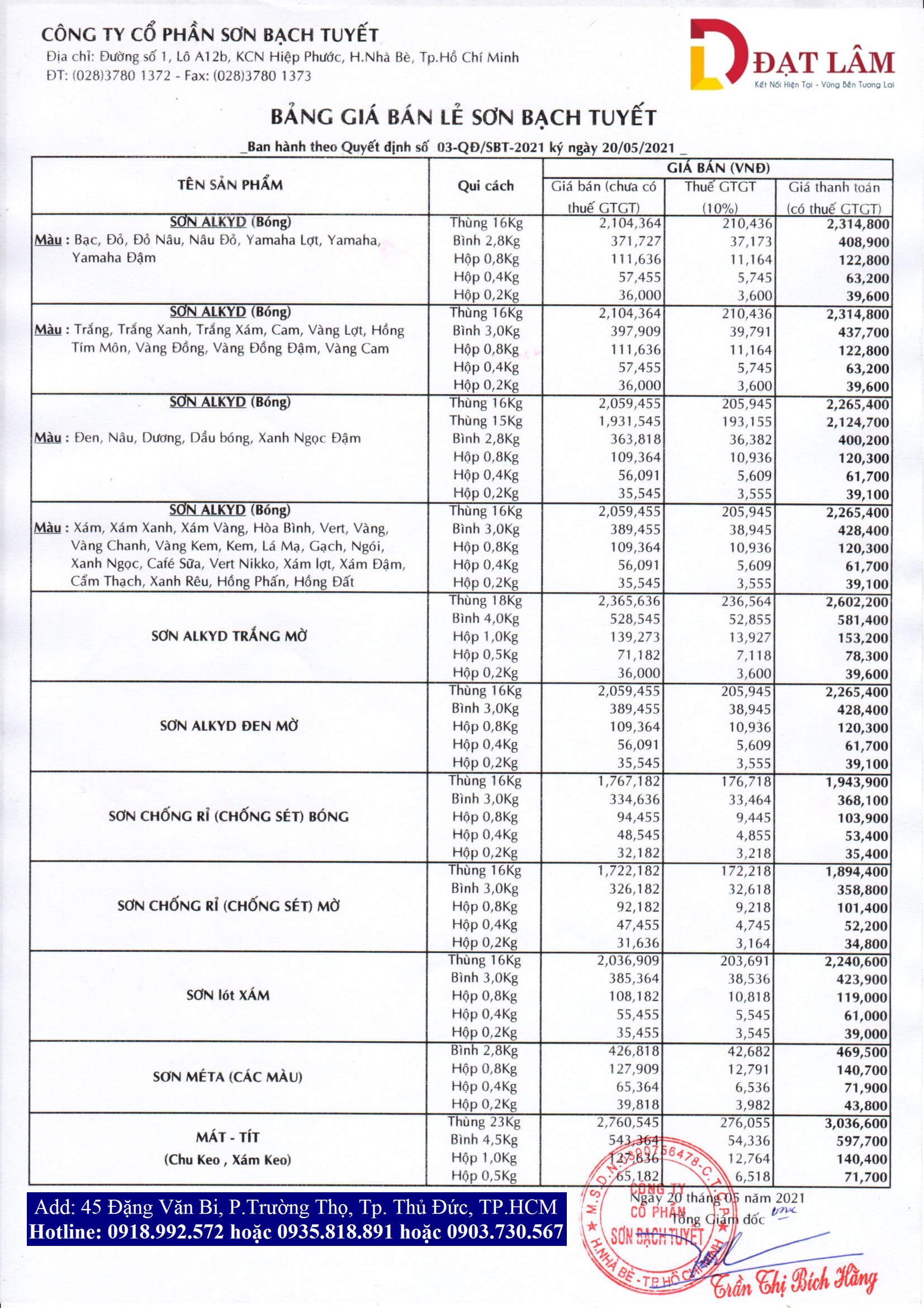 BẢNG GIÁ SƠN KCC MỚI NHẤT 2023