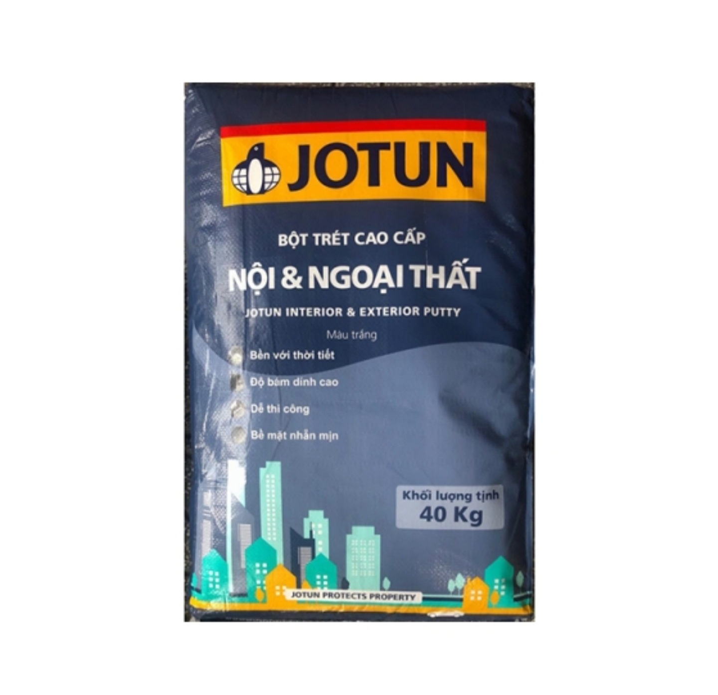 BỘT TRÉT TƯỜNG JOTUN 2 TRONG 1 NỘI & NGOẠI THẤT – JOTUN INTERIOR & EXTERIOR PUTTY (BỘT NỘI NGOẠI THẤT JOTUN PUTTY) Là bột trét dùng để tạo phẳng, che lấp các lỗ nhỏ hoặc các khiếm khuyết khác của bề mặt tường, hồ vữa và bê tông (nội thất và ngoại thất) trước khi sơn lớp lót và sơn phủ hoàn thiện.