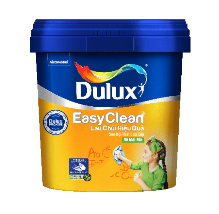 Sơn Dulux EasyClean Lau Chùi Hiệu Quả – Bề mặt Mờ là sơn nội thất cao cấp giúp giữ tường nhà bạn luôn sạch đẹp hơn với các tính năng: Chùi rửa dễ dàng Tính năng kháng khuẩn (*) Công nghệ Colourguard giúp giữ màu sắc luôn tươi mới Bề Mặt Dulux EasyClean Láng Mịn Nhẹ mùi, lượng VOC thấp Đạt chứng nhận xanh của tổ chức Singapore Green Building Product (SGBC) Không thêm chì, không thêm Thủy Ngân (*) Tính năng kháng khuẩn được kiểm nghiệm trong phòng thí nghiệm bởi tổ chức uy tín TUV SUD tại Singapore theo tiêu chuẩn JIS Z 2801:2012.