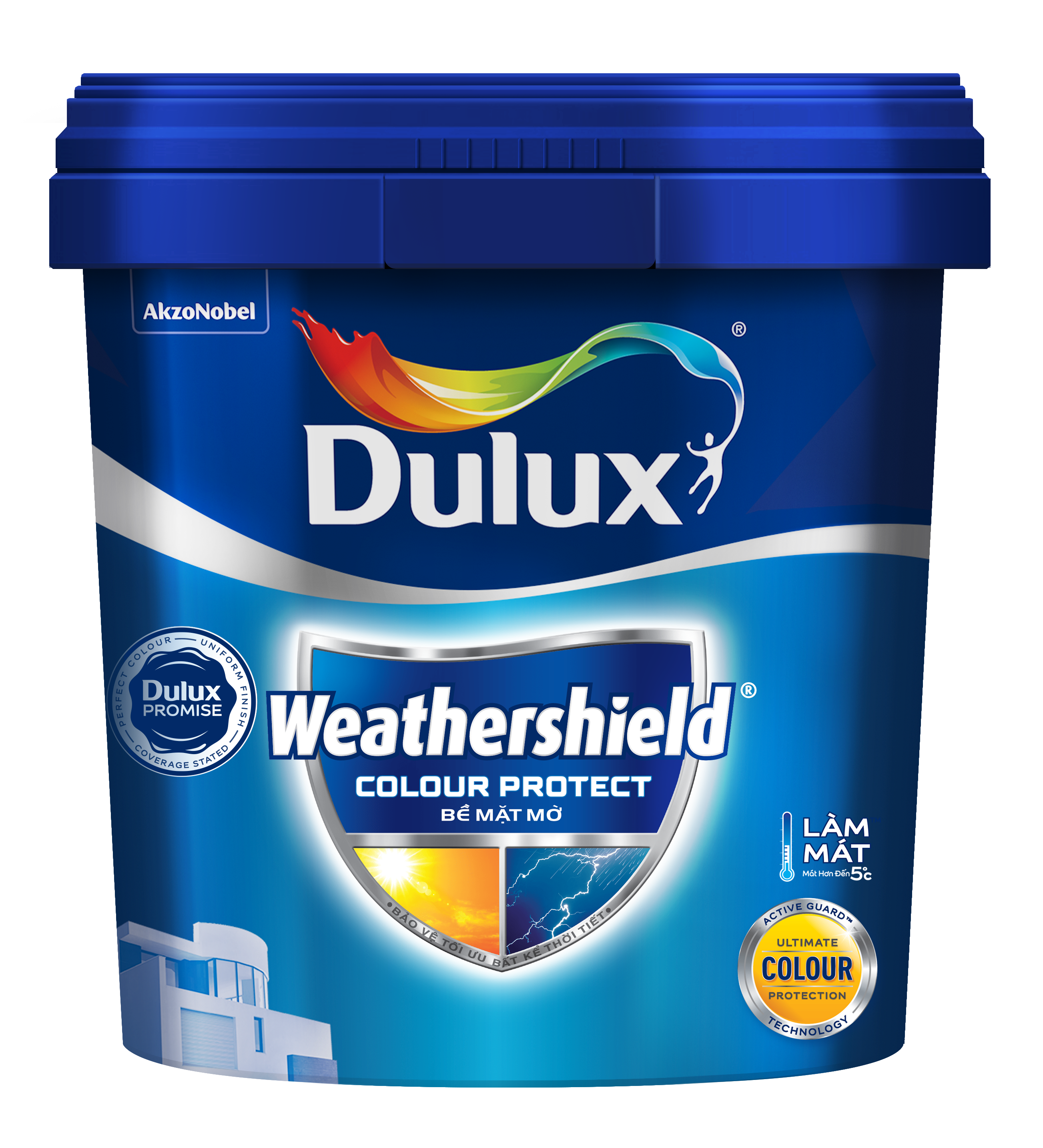 - Bền màu – Giảm nhiệt: màng sơn của Dulux Weathershield Colour Protect màng sơn Mờ có khả năng chống chọi rất tốt với tia UV giúp bền màu gấp 2 lần so với các dòng sơn khác và giúp cho bề mặt tường nhà được mát hơn