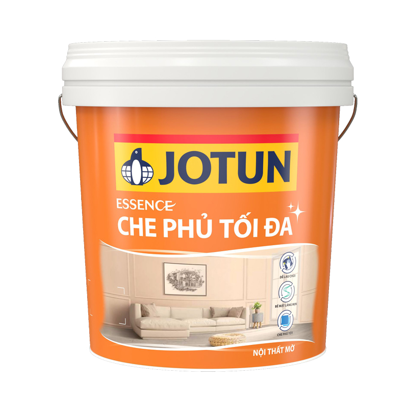 Sơn trong nhà Jotun Essence Che Phủ Tối Đa Mờ là loại sơn nước nội thất gốc Arcylic biến tính, màng sơn mờ láng mịn, vết bẩn dễ dàng được lau sạch mà không ảnh hưởng tới màng sơn. Jotun Essence Che phủ tối đa màng sơn mờ là sản phẩm mới nhất từ thương hiệu Sơn Jotun .