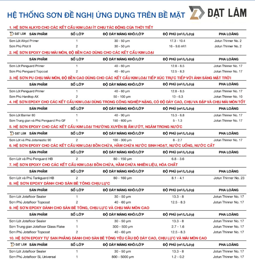 Định mức sơn công nghiệp Jotun